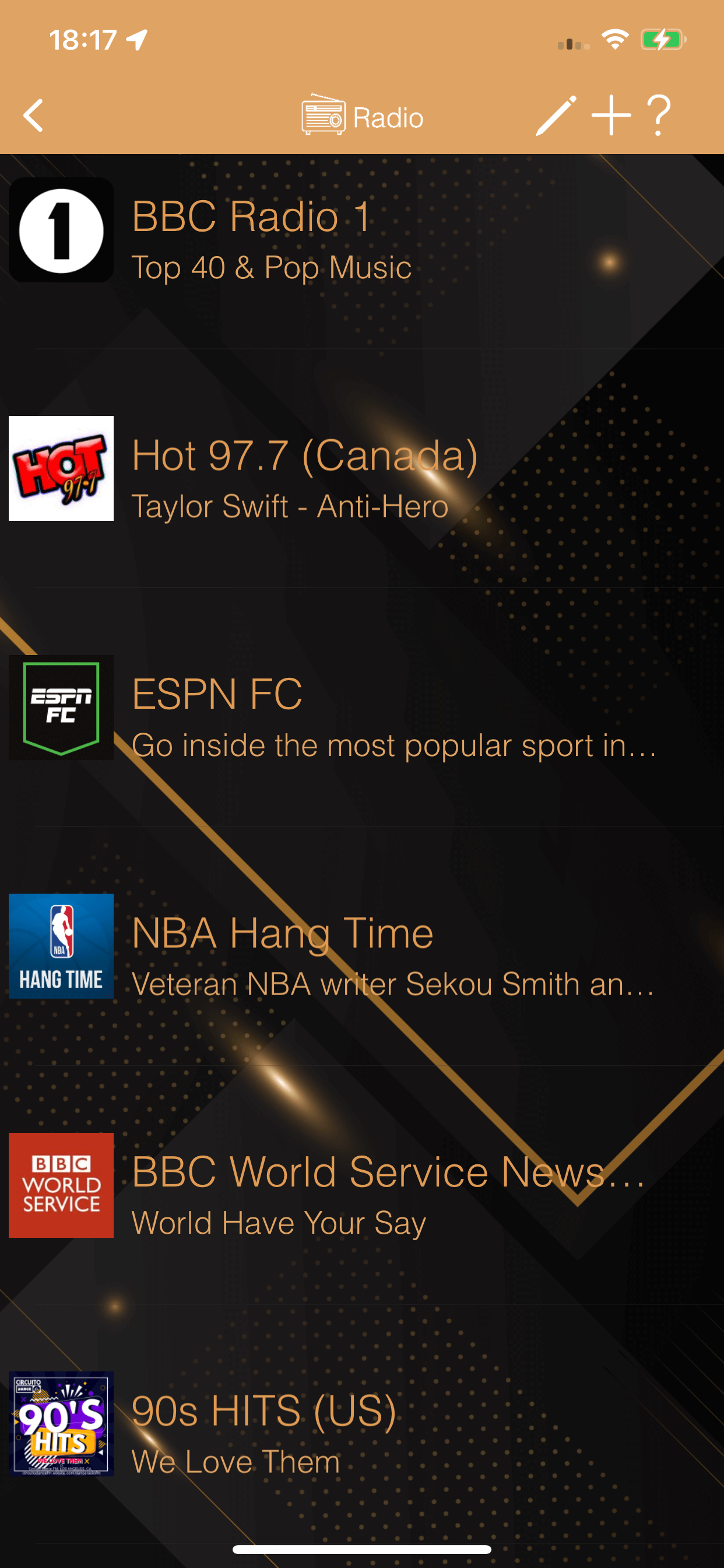 Radio player with endless list of radio stations to choose from.